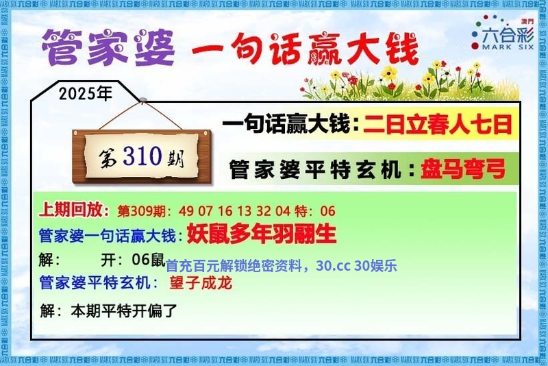 | 310期:三头中特<0.2.3>开:虎16错 |